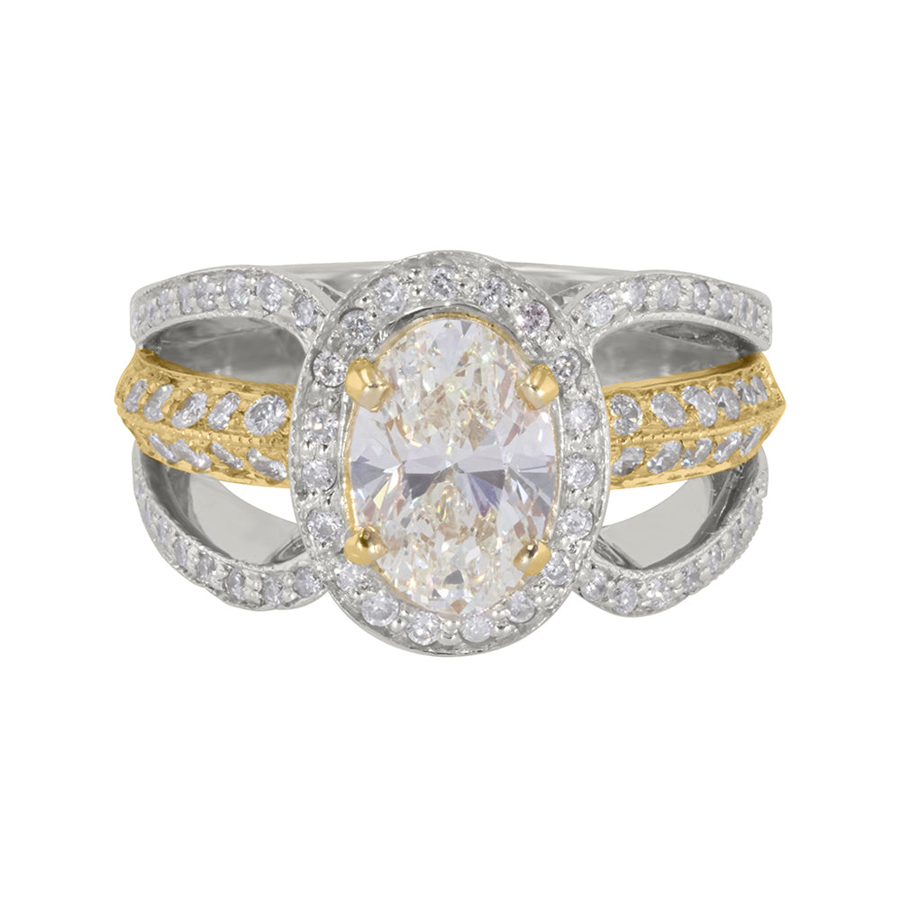 Two-Tone Oval Light Yellow Diamond Ring 2.71ct